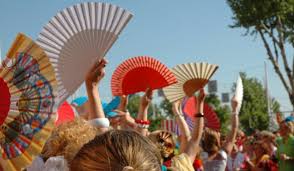 abanicos bate compulsivamente, casi desmedidamente los senos de las señoras